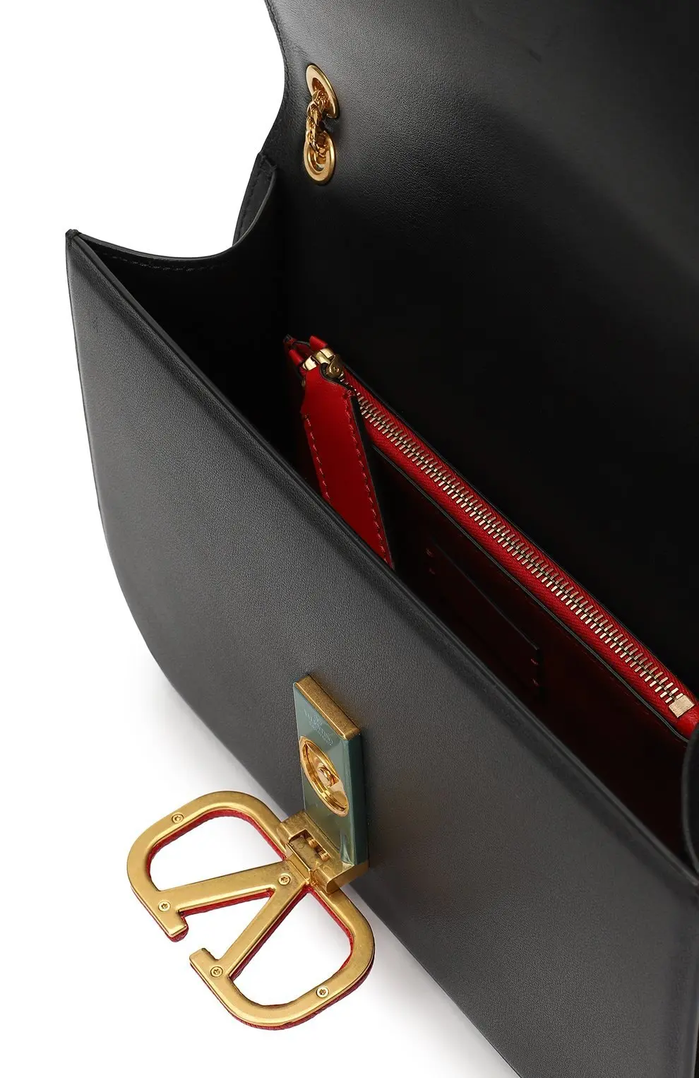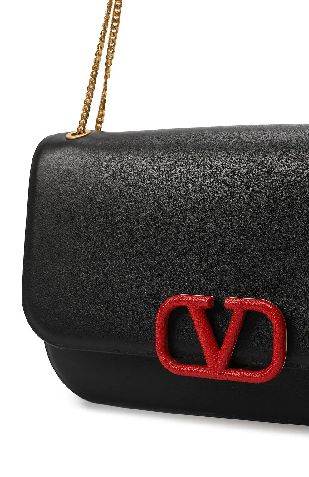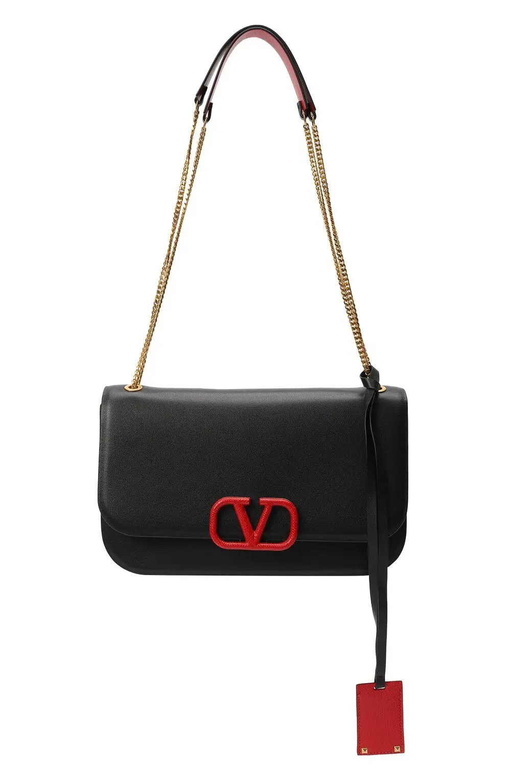 Сумка Vlock Medium от Valentino — это воплощение элегантности и современного стиля. Модель выполнена из гладкой чёрной кожи и акцентирована фирменной пряжкой VLOGO в насыщенном красном цвете, которая добавляет аксессуару смелый и узнаваемый штрих. Золотая цепочка-ремень с кожаной вставкой позволяет носить сумку на плече или кросс-боди, сохраняя комфорт. Средний размер делает её универсальной: она достаточно вместительна для ежедневных нужд, но при этом сохраняет изящность силуэта. Идеальный аксессуар, который гармонично дополнит как дневные, так и вечерние образы.
