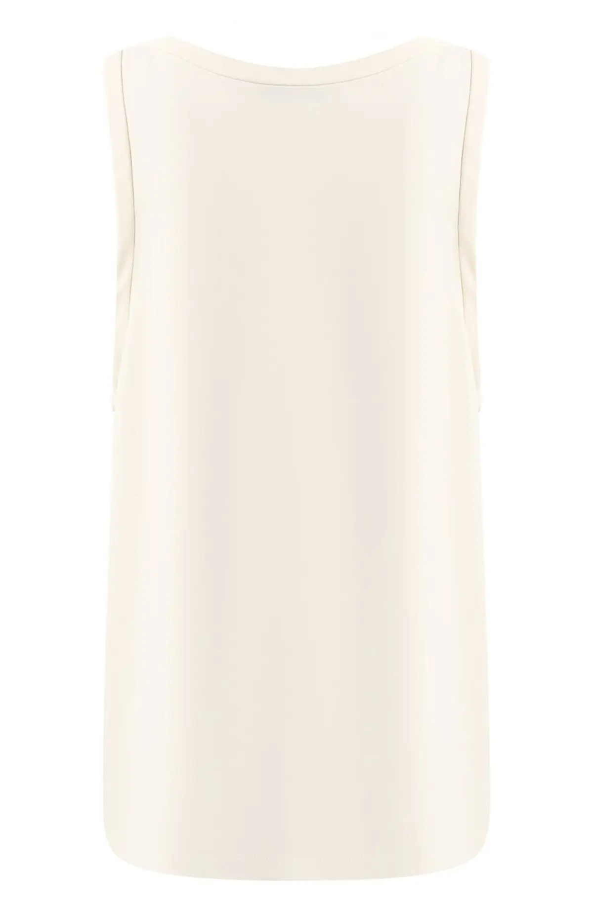 Лаконичный топ Valentino из гладкой лёгкой ткани молочного оттенка. Универсальная модель с округлым вырезом станет идеальной основой для элегантных и повседневных образов.