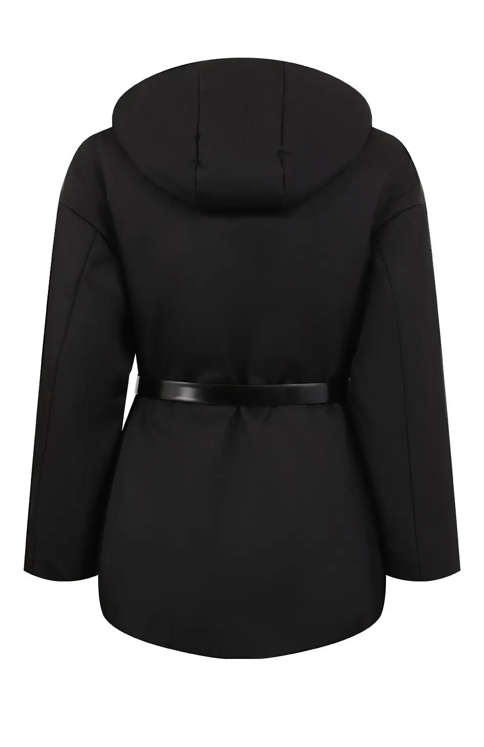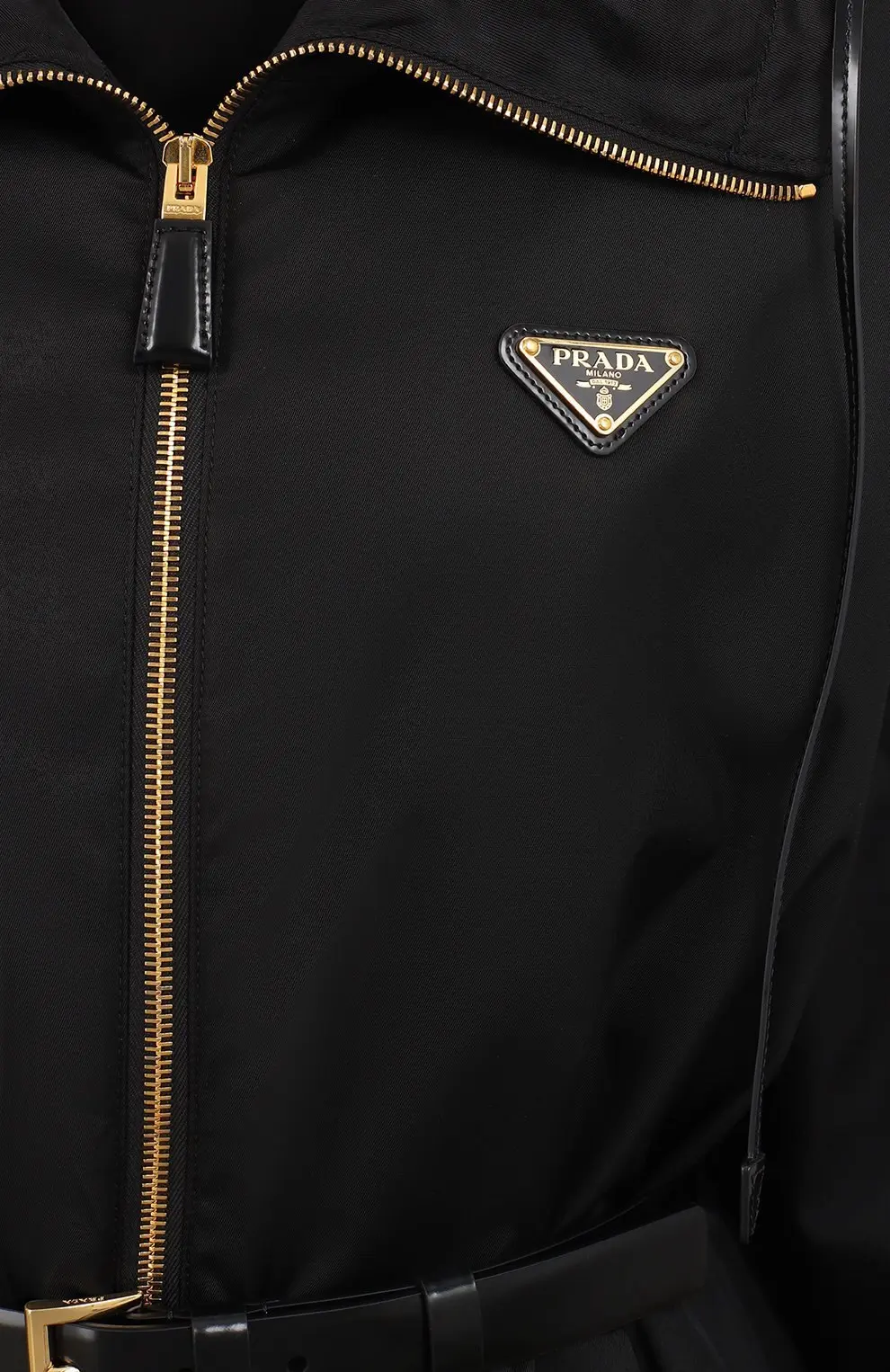 Куртка выполнена из гладкого технического материала с матовой поверхностью. Прямой силуэт дополнен капюшоном, поясом на талии и золотистой молнией, подчёркивающей лаконичный дизайн. Практичная модель для городских образов в прохладную погоду.
