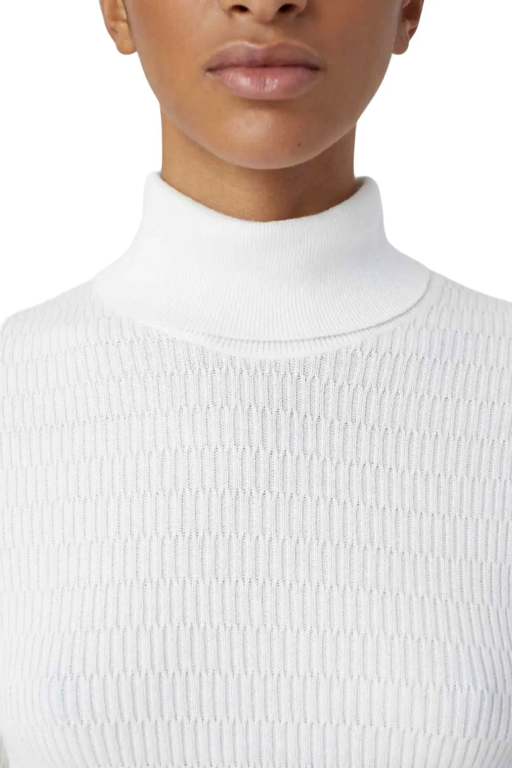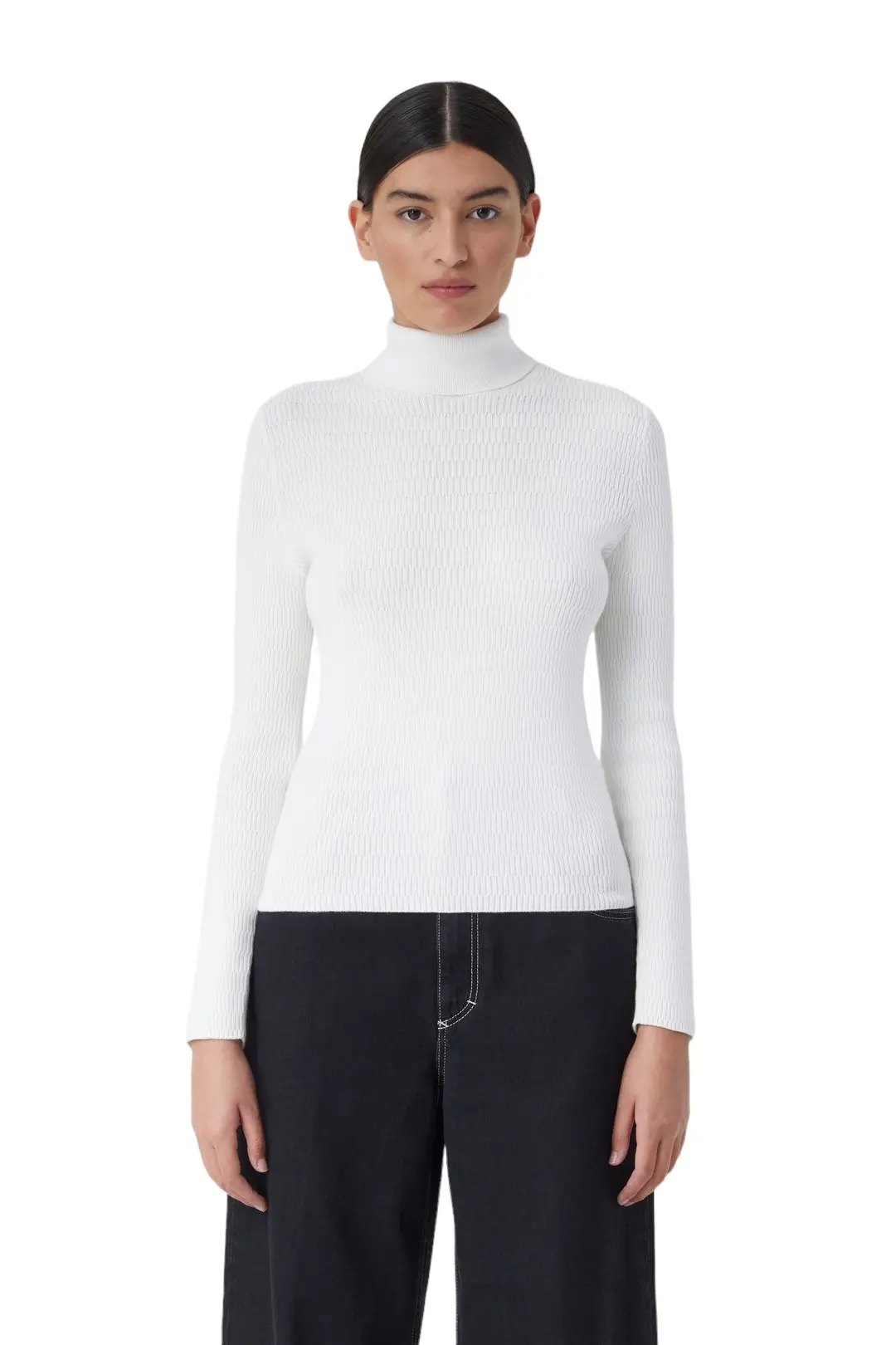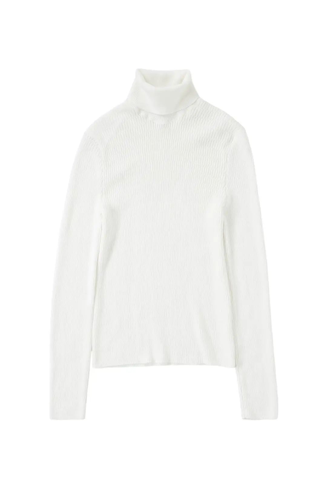 Закрытая водолазка Closed в рубчик имеет высокий воротник и сделана из органической шерсти. Изделие с прилегающей посадкой можно сочетать с высокими брюками для элегантных образов на прохладную погоду.