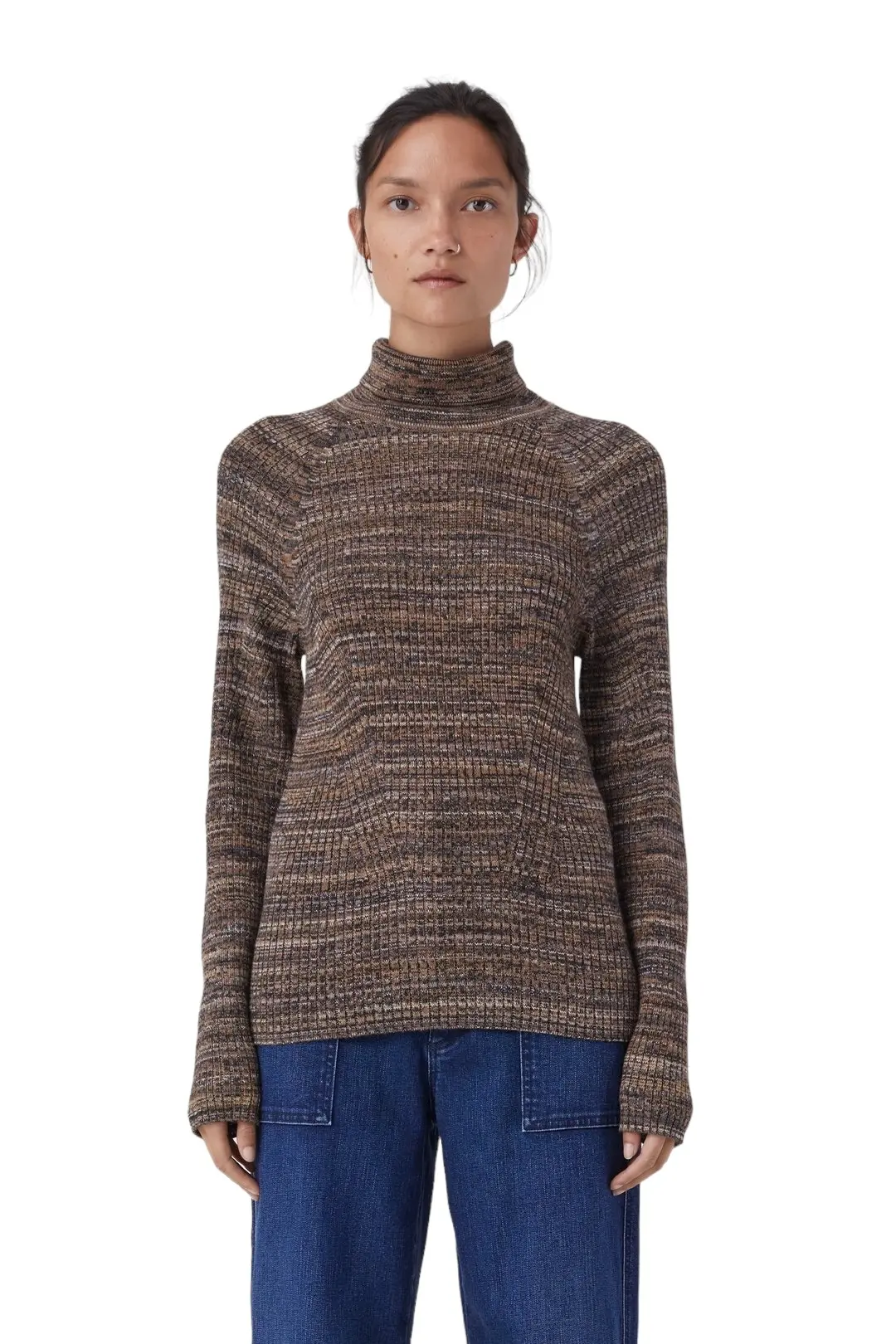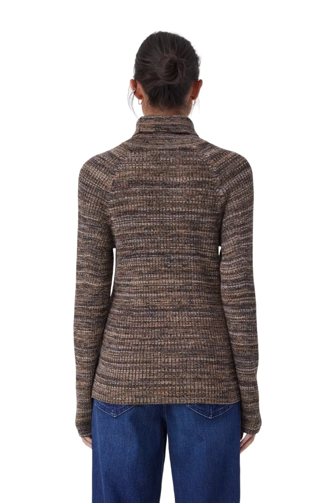 Водолазка Closed коричневого цвета в рубчик выполнена из смеси акрила, хлопка и вискозы с добавлением шерсти, поэтому будет комфортна в ежедневной носке. Создайте уютный образ, сочетая изделие с юбкой в тон из коллекции Closed.