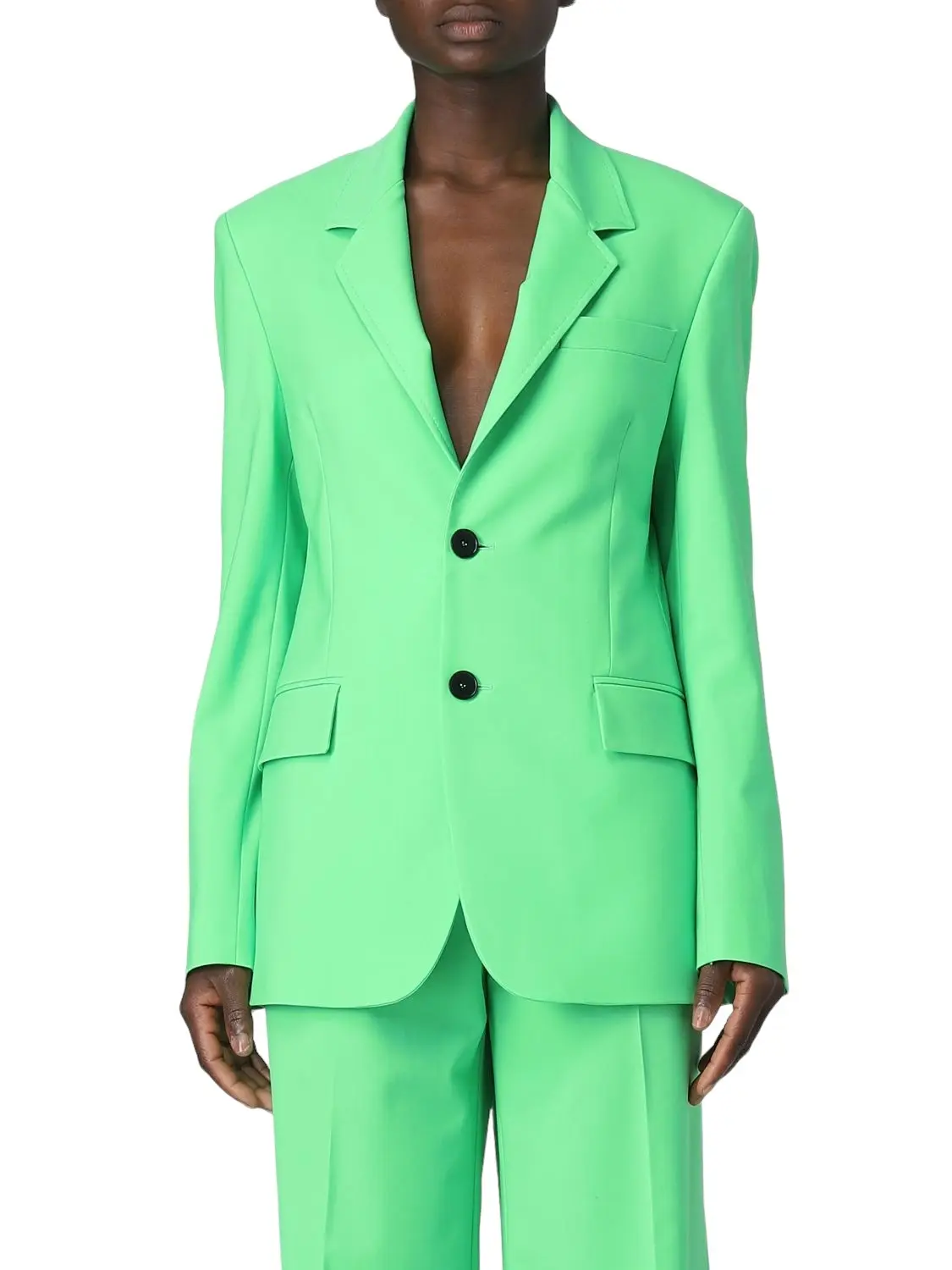 Классический однобортный жакет MSGM из коллекции Flamed. Внутренние подплечники и полуприлегающая талия придают строгость и структурированность образу. Выполнен из легкой эластичной шерсти. Сочетайте с зелеными брюками со стрелками из коллекции MSGM.
