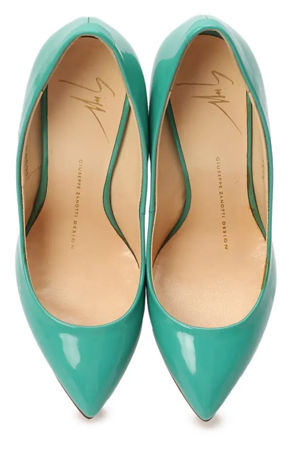 Туфли-лодочки Dirty Giuseppe Zanotti Design выполнены из лакированной кожи насыщенного бирюзового оттенка, придающего образу свежесть и выразительность. Классический заострённый мысок в сочетании с изящным высоким каблуком формирует утончённый силуэт и визуально удлиняет ноги. Внутренняя отделка из натуральной кожи обеспечивает комфорт, а гладкий блеск лака добавляет элегантности. Эти туфли станут ярким акцентом как для вечернего выхода, так и для стильного дневного ансамбля.