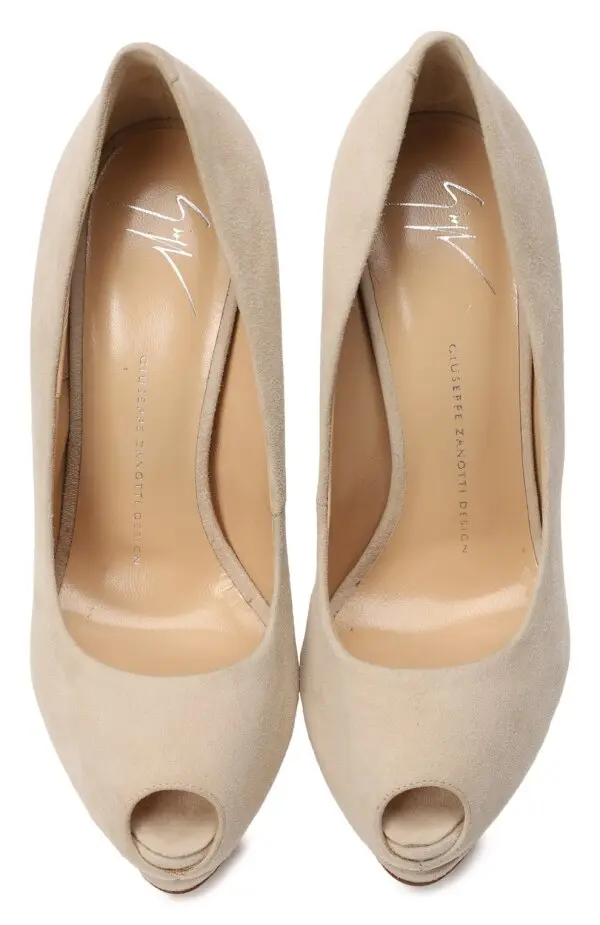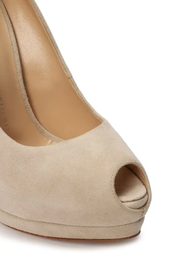 Туфли Sharon от Giuseppe Zanotti Design – воплощение женственности и утончённого стиля. Модель выполнена из мягкой замши в светлом нюдовом оттенке, дополнена изящным вырезом peep-toe и устойчивой платформой, визуально смягчающей впечатляющую шпильку. Гармония элегантного силуэта и премиальных материалов делает эту пару идеальным выбором для особых случаев и вечерних выходов.