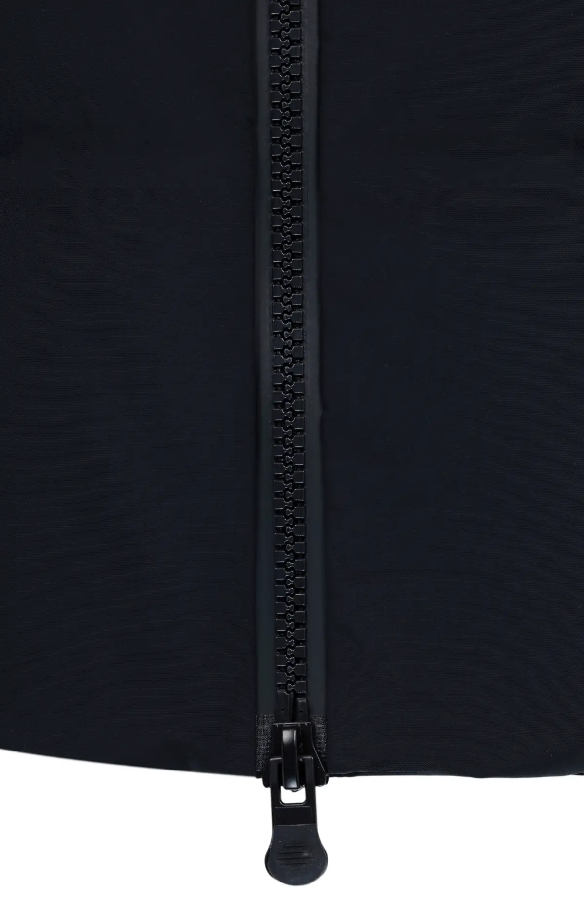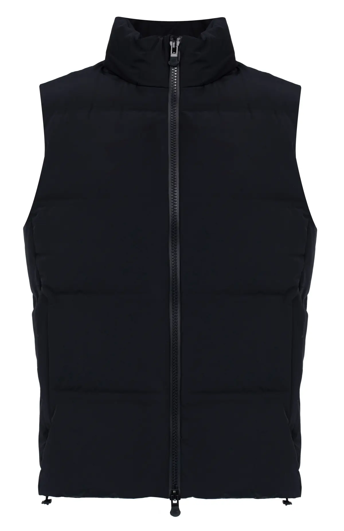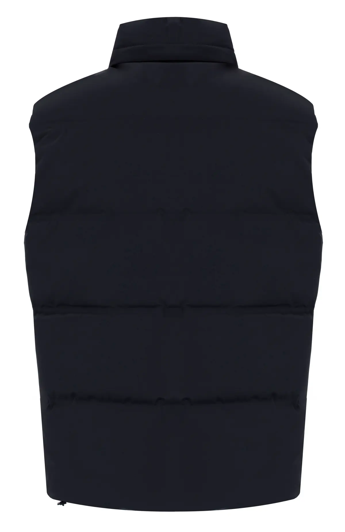 Жилет выполнен из гладкого полиамида с мягкой, слегка матовой поверхностью, устойчивой к ветру и влаге. Модель отличается лаконичной стёжкой и высоким воротником-стойкой, создающим дополнительный комфорт в прохладную погоду. Прямой силуэт и минималистичный дизайн позволяют легко интегрировать изделие в повседневный гардероб