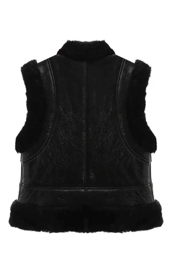 Кожаный жилет Dior выполнен из высококачественной чёрной кожи и дополнен мягкой меховой отделкой, которая придаёт изделию изысканную фактуру и обеспечивает комфорт в холодное время года. Модель отличается лаконичным кроем без застёжек, что делает её универсальной для многослойных образов. Контраст гладкой кожи и пушистого меха создаёт элегантный и в то же время современный стиль. Такой жилет идеально подойдёт как для повседневных ансамблей, так и для утончённых вечерних сочетаний, добавляя образу нотку роскоши и характера.