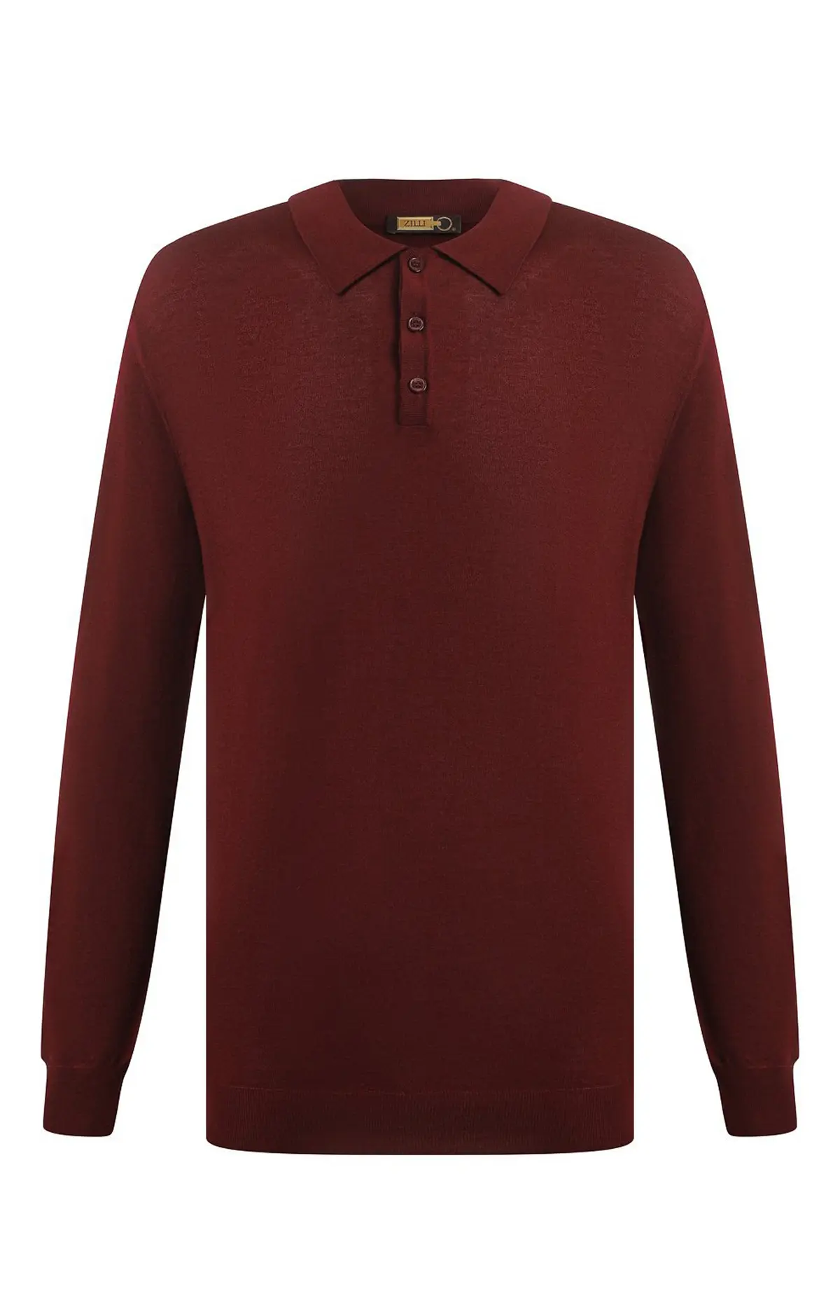 Поло из кашемира и шелка Zilli в насыщенном бордовом оттенке. Модель с длинным рукавом, классическим воротником и застежкой на три пуговицы. Лаконичный дизайн подчеркивает изысканность материала и стиль бренда.
