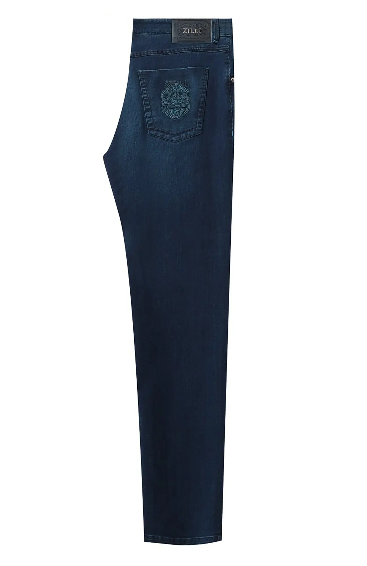 Джинсы Zilli из мягкого денима глубокого синего оттенка. Классическая посадка, прямой крой и минималистичный дизайн подчёркивают универсальность модели. Декорированы фирменной нашивкой с логотипом бренда. Подходят как для повседневных, так и для более элегантных образов в стиле smart casual.