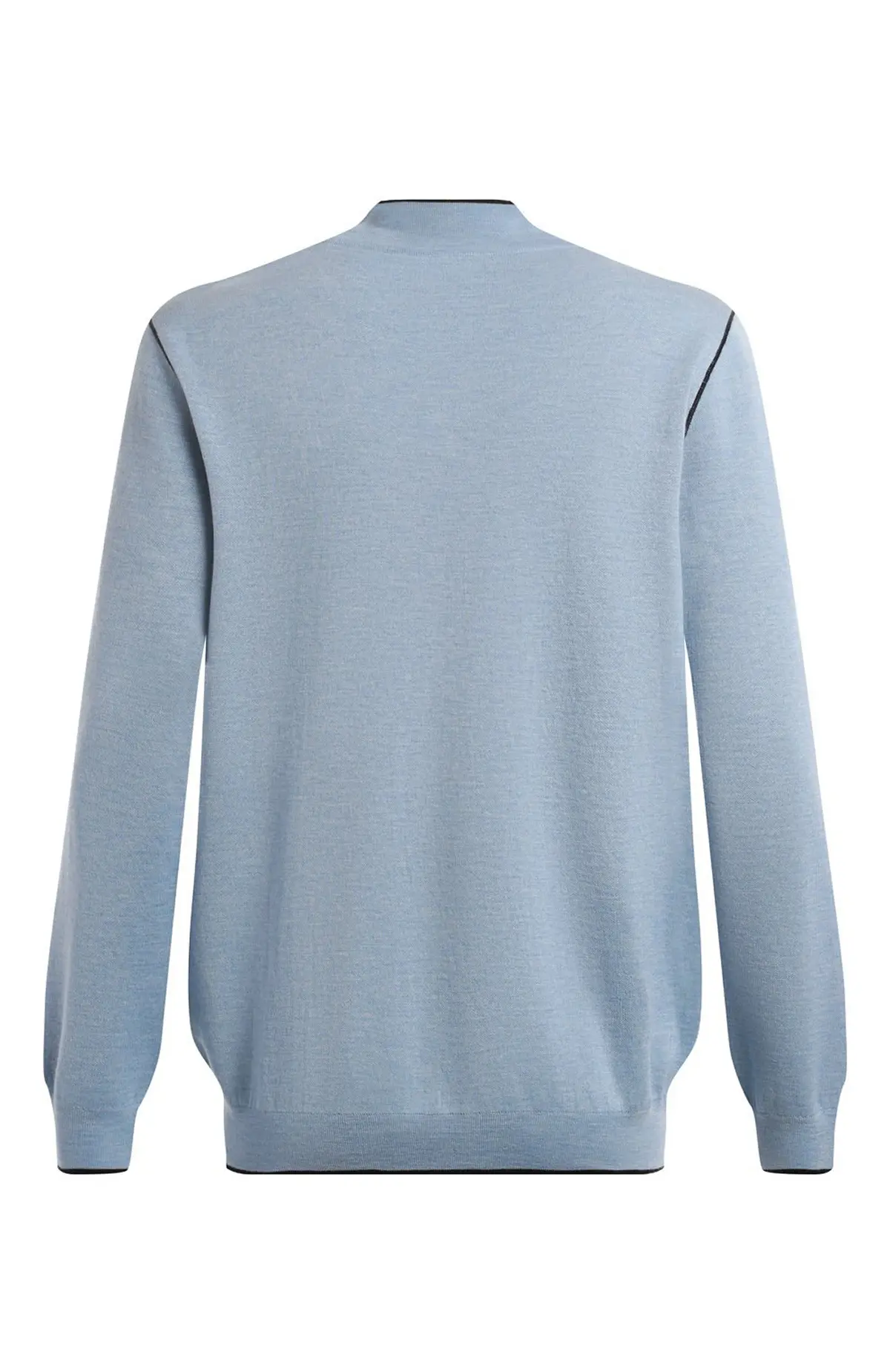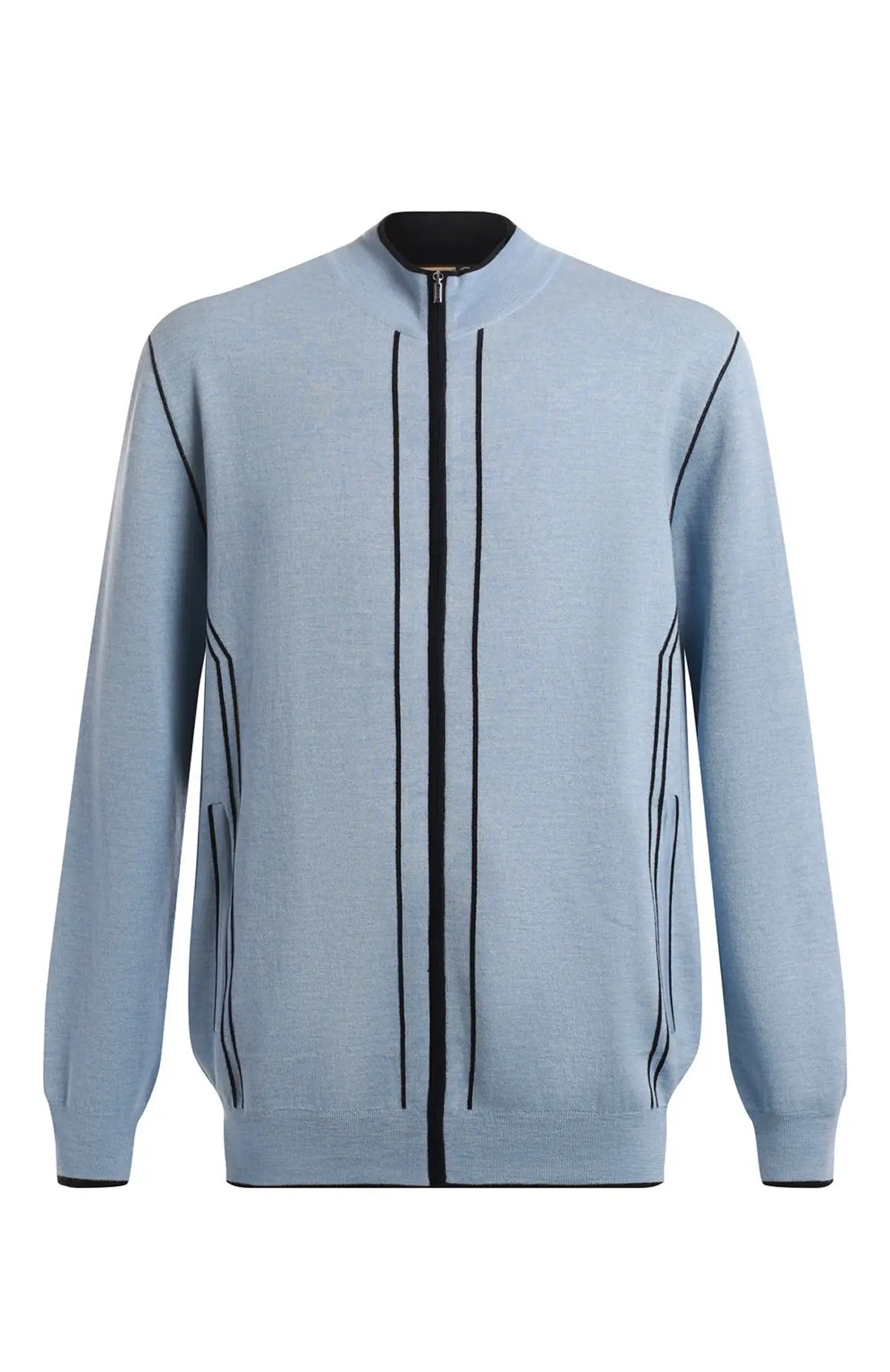 Спортивный костюм Zilli из кашемира и шелка сочетает комфорт и изысканность. Голубой верх на молнии с контрастными черными линиями придает динамичный акцент, а черные прямые брюки создают лаконичный силуэт. Мягкая и дышащая ткань обеспечивает свободу движений и уют, делая костюм идеальным для стильного повседневного и спортивного образа.