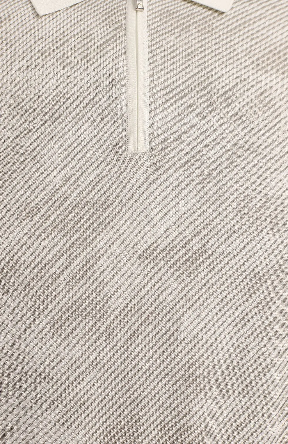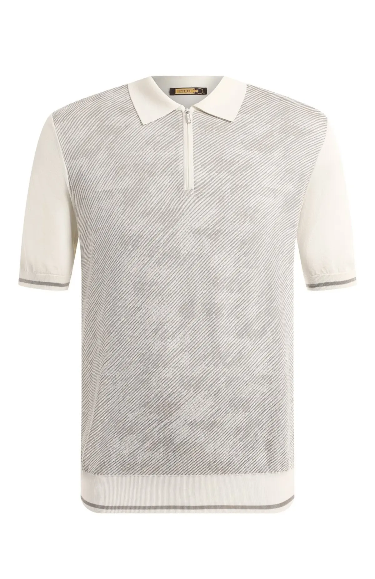 Поло Zilli из шелка и хлопка представлено в элегантном светлом оттенке с тонким диагональным узором. Мягкая фактура материала обеспечивает комфорт и превосходную посадку, а лаконичный дизайн с воротником и молнией придает образу изысканность. Эта модель — воплощение утончённого стиля и непринуждённой роскоши, характерной для бренда Zilli.
