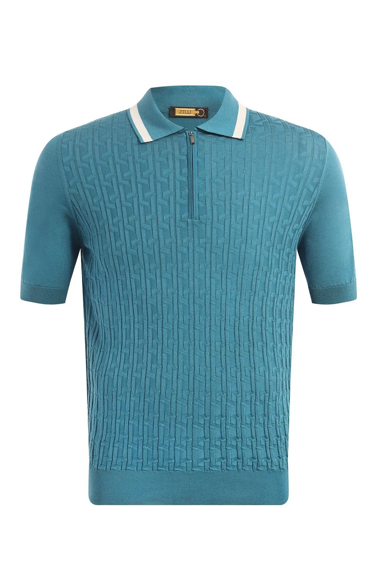 Шелковое поло Zilli бирюзового оттенка. Модель выполнена из тончайшего натурального шелка с объемным геометрическим узором по передней части. Воротник с контрастной отделкой и короткая молния придают изделию современный характер. Легкий, дышащий материал обеспечивает комфорт и безупречный внешний вид даже в жаркую погоду.