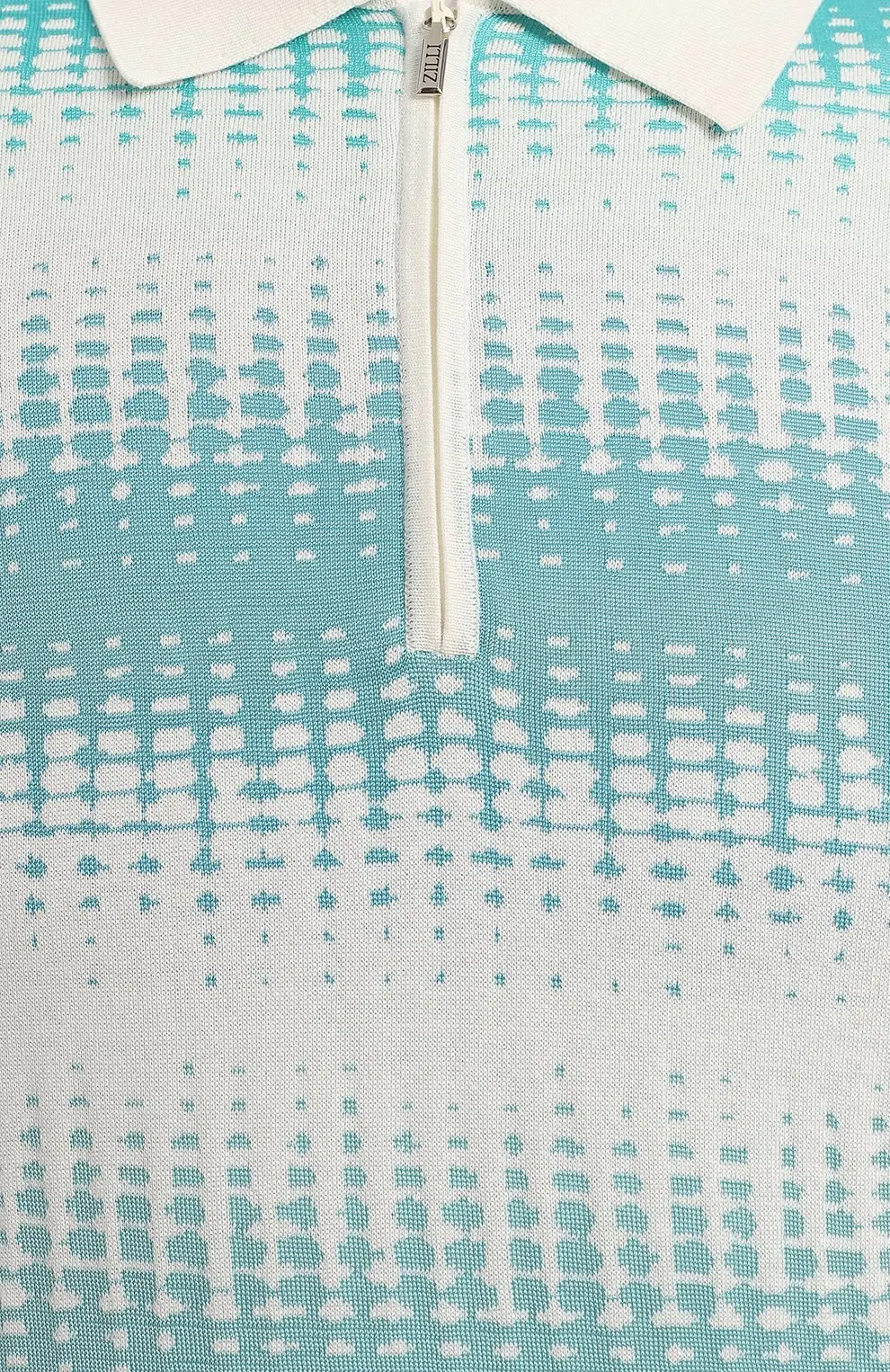 Поло Zilli из шелка и хлопка — воплощение лёгкости и элегантности. Модель выполнена в освежающей бело-голубой гамме с градиентным геометрическим рисунком, создающим эффект мягкого сияния. Тонкий трикотаж обеспечивает комфорт и идеальную посадку, а застёжка-молния и воротник-поло придают образу современное звучание.