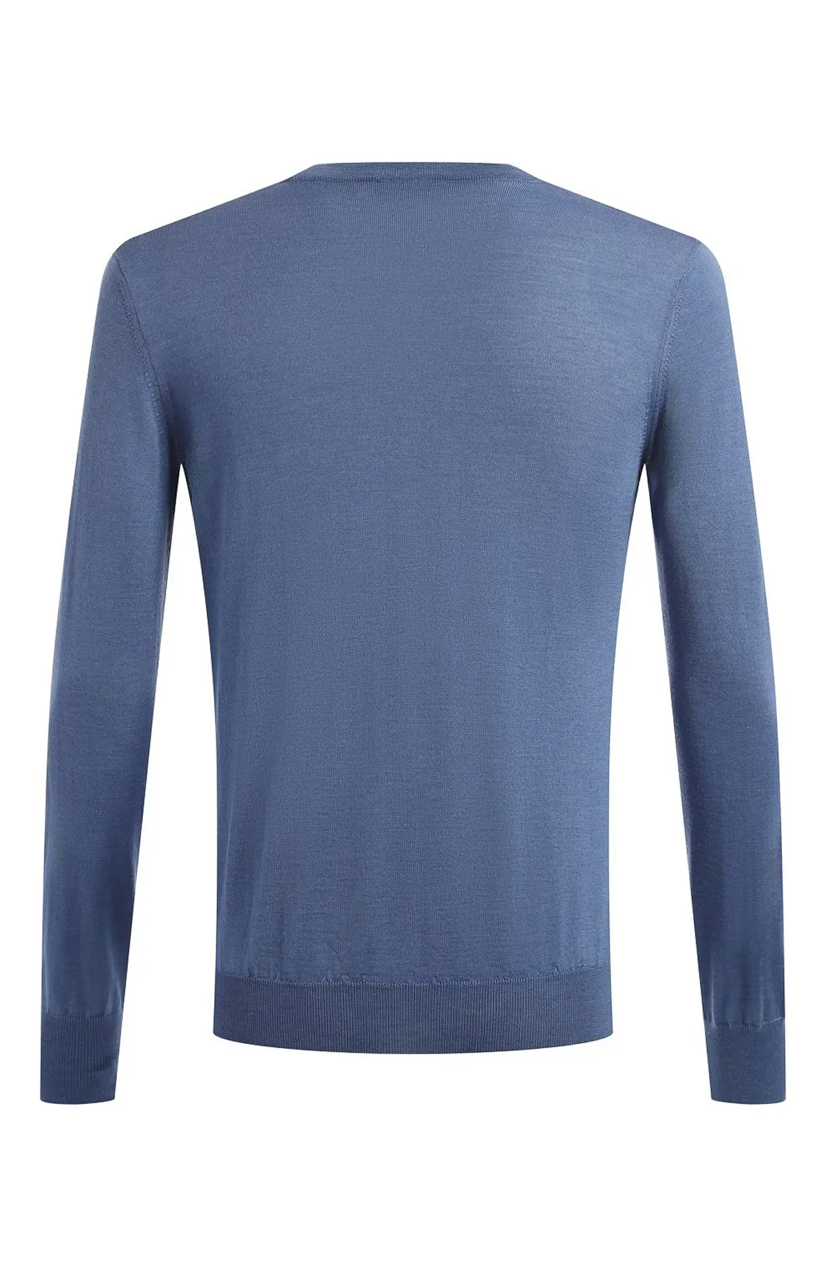Джемпер Zilli из тончайшего кашемира и шёлка в небесно-голубом оттенке. Модель с круглым вырезом и изысканным фактурным узором спереди сочетает комфорт и элегантность. Мягкий, лёгкий и дышащий материал обеспечивает безупречную посадку и подходит как для делового, так и для повседневного образа.