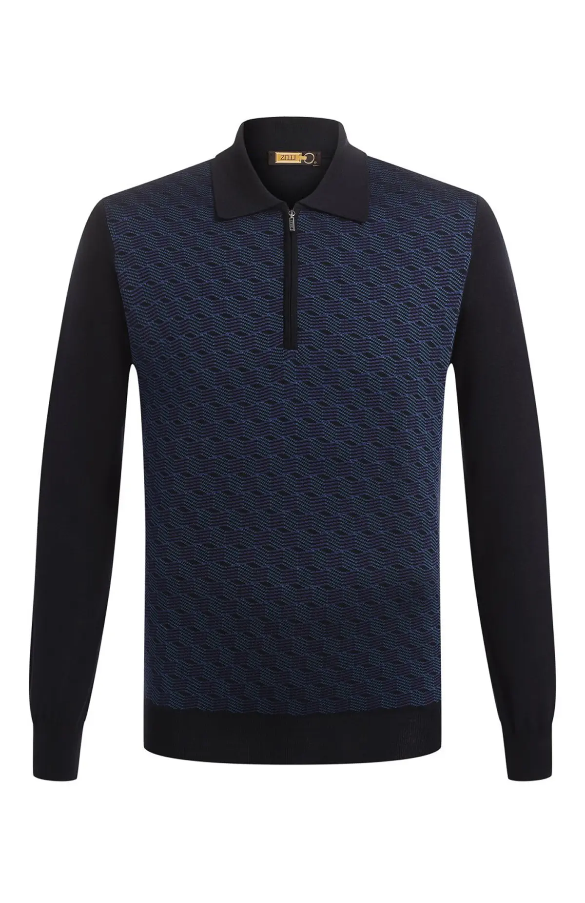 Поло Zilli из кашемира и шелка сочетает в себе безупречный комфорт и изысканный стиль. Модель выполнена в темно-синем оттенке с объемным геометрическим узором на передней части. Тонкий трикотаж придаёт изделию легкость и мягкость, а молния и классический воротник подчеркивают современную элегантность. Идеальный выбор для утонченного повседневного образа.