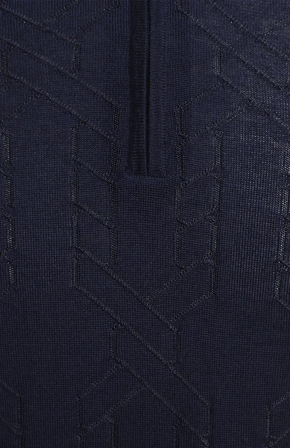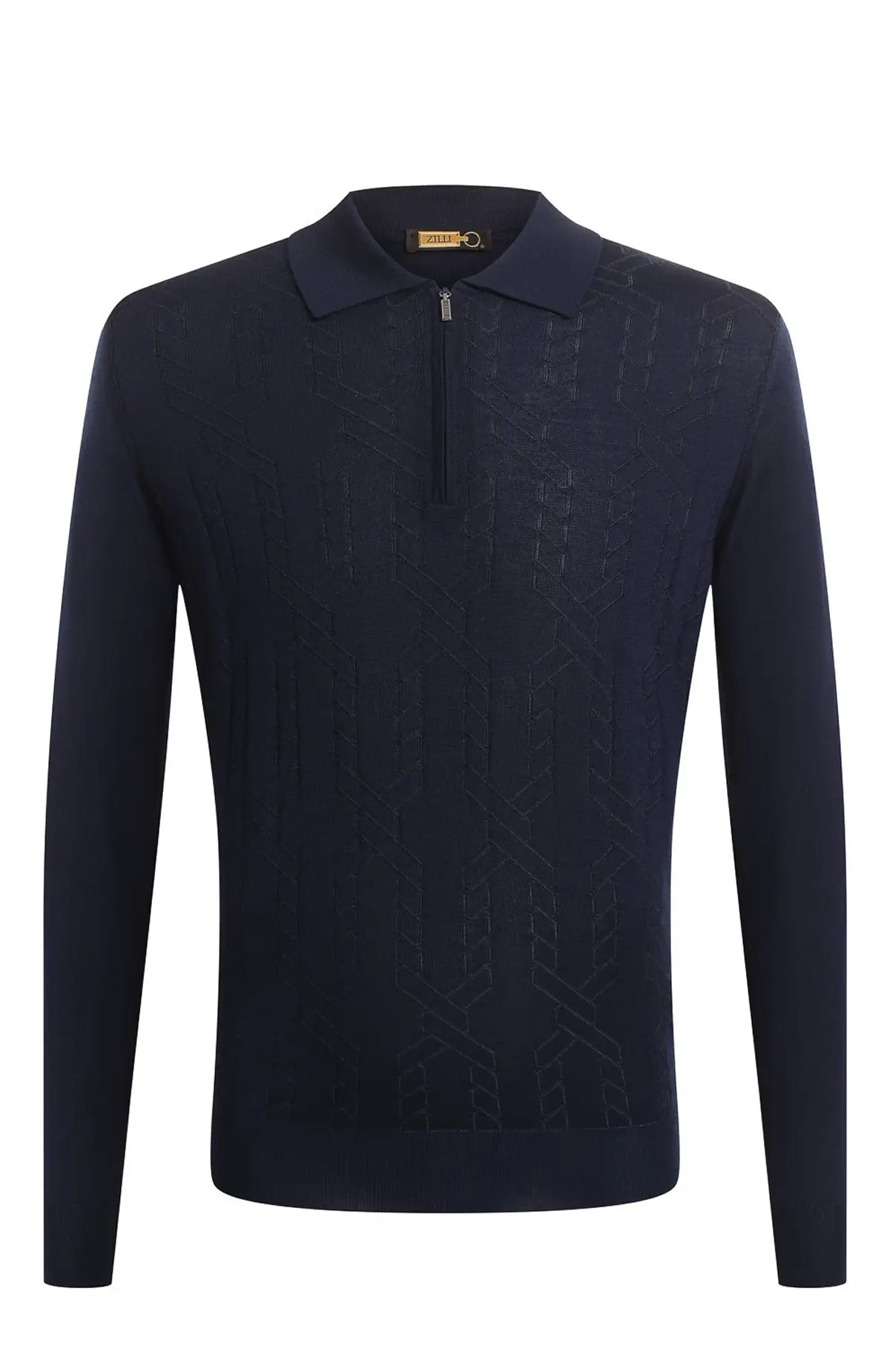 Поло из кашемира и шелка Zilli выполнено в темно-синем цвете. Модель с длинным рукавом и воротником на молнии украшена фактурным узором. Элегантный дизайн сочетает комфорт и утонченность.